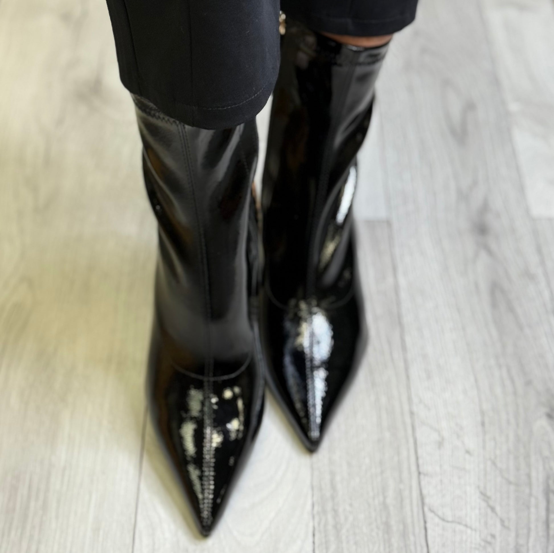 Dancing Matilda - Black Patent Animal Heel Detail Boot