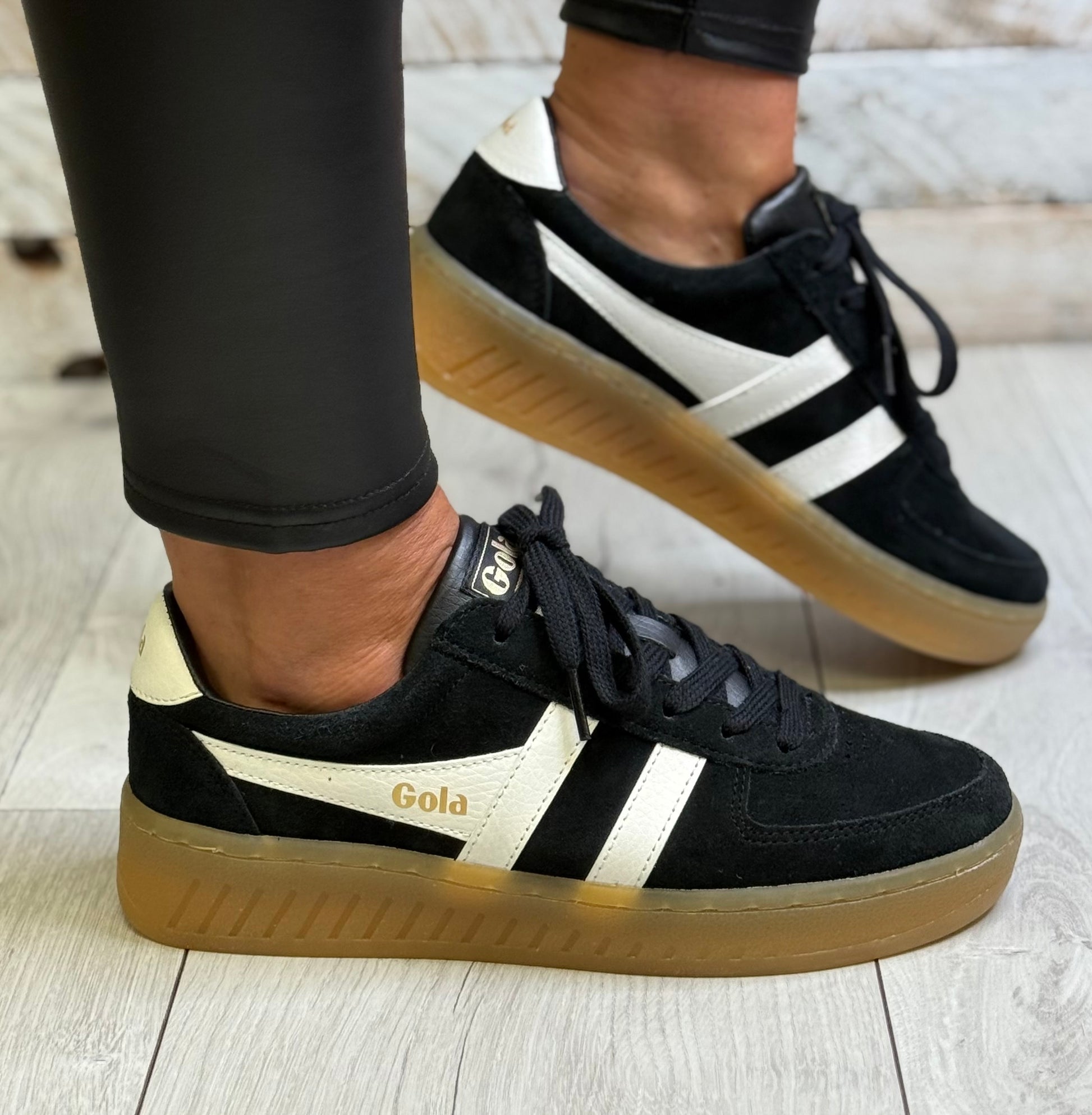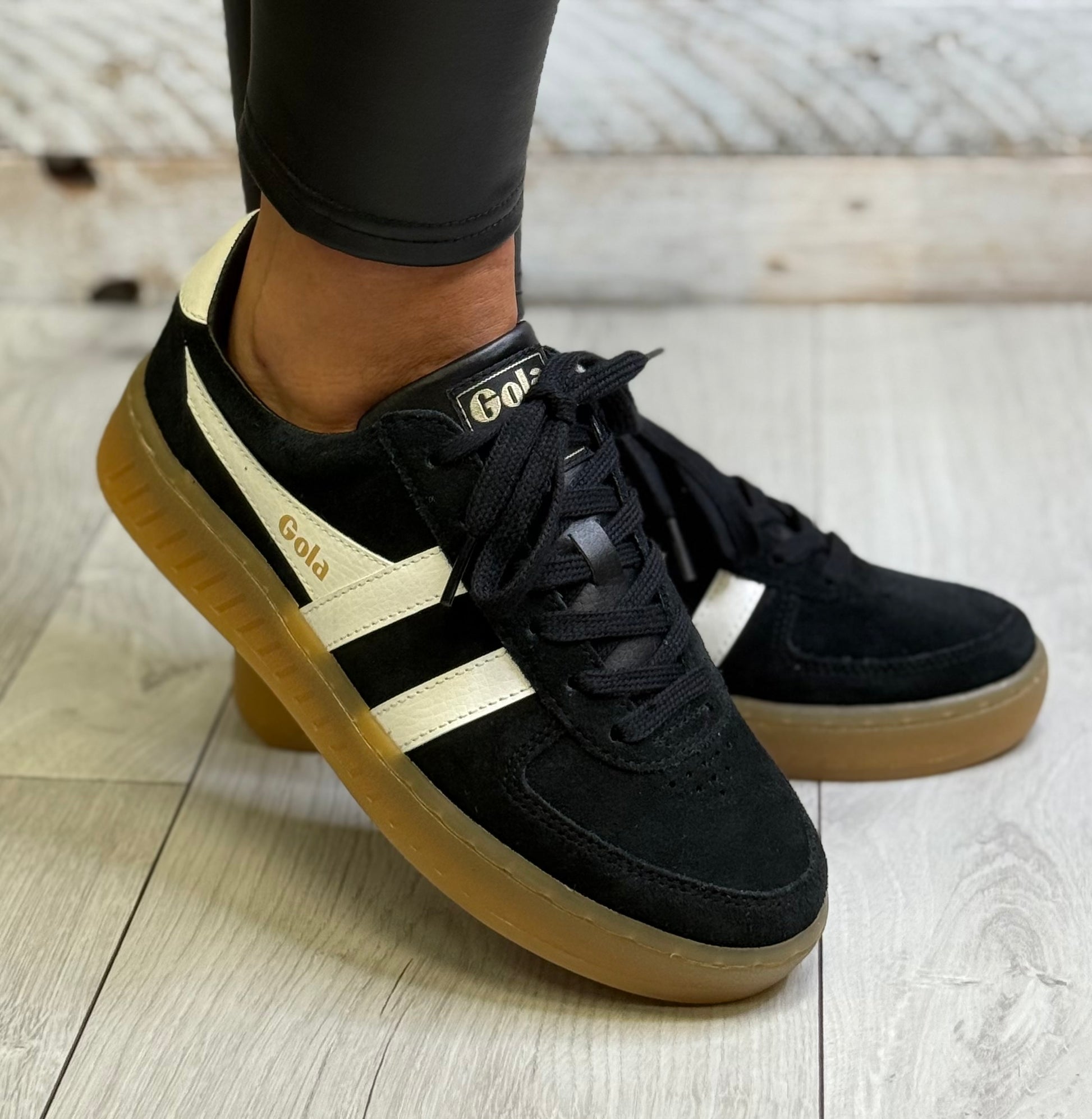 Gola - ‘Grandslam' Black/Off White Gum Sole Trainer