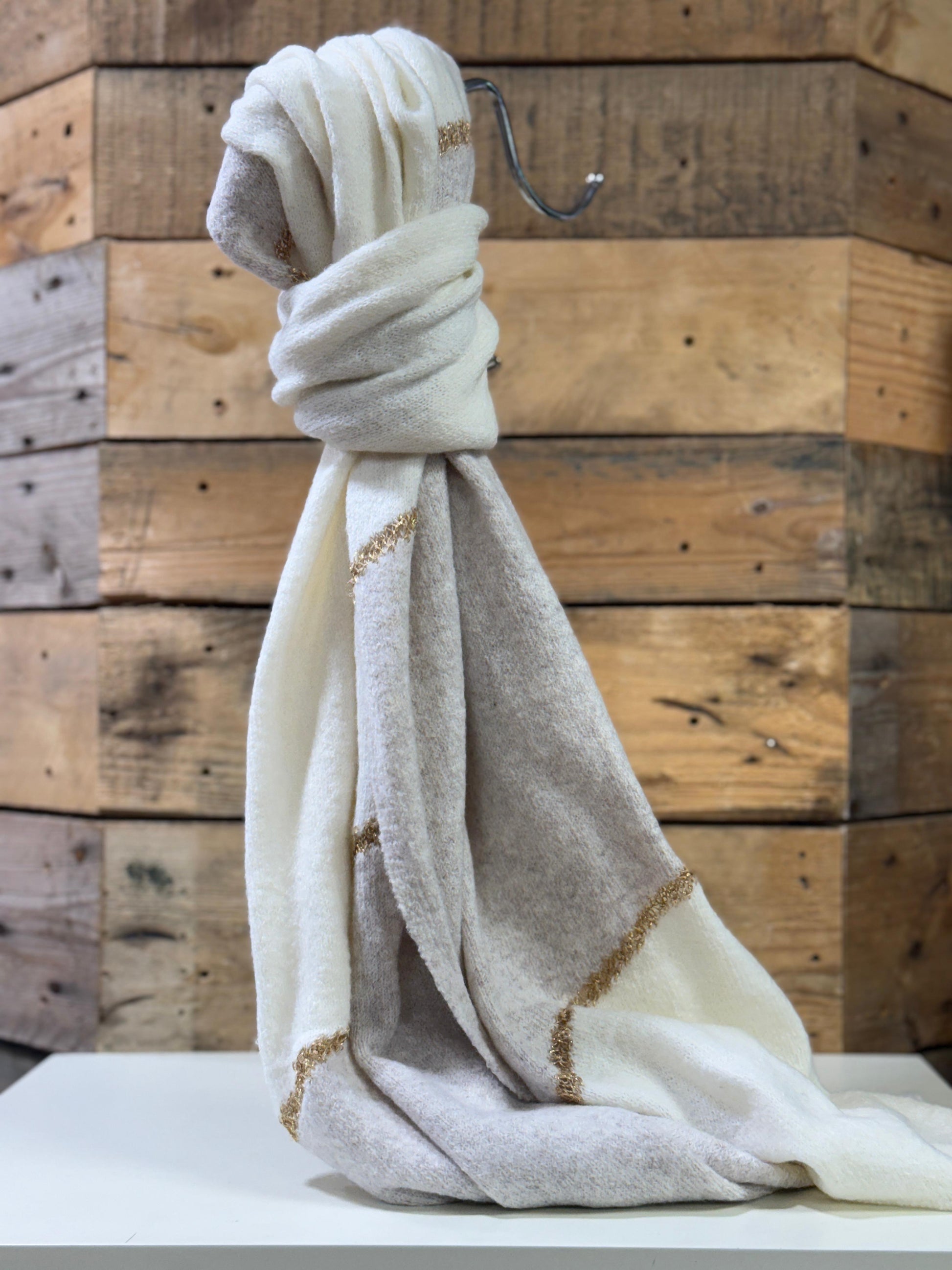 hannah k - Cream/Oatmeal Lurex Stripe Scarf