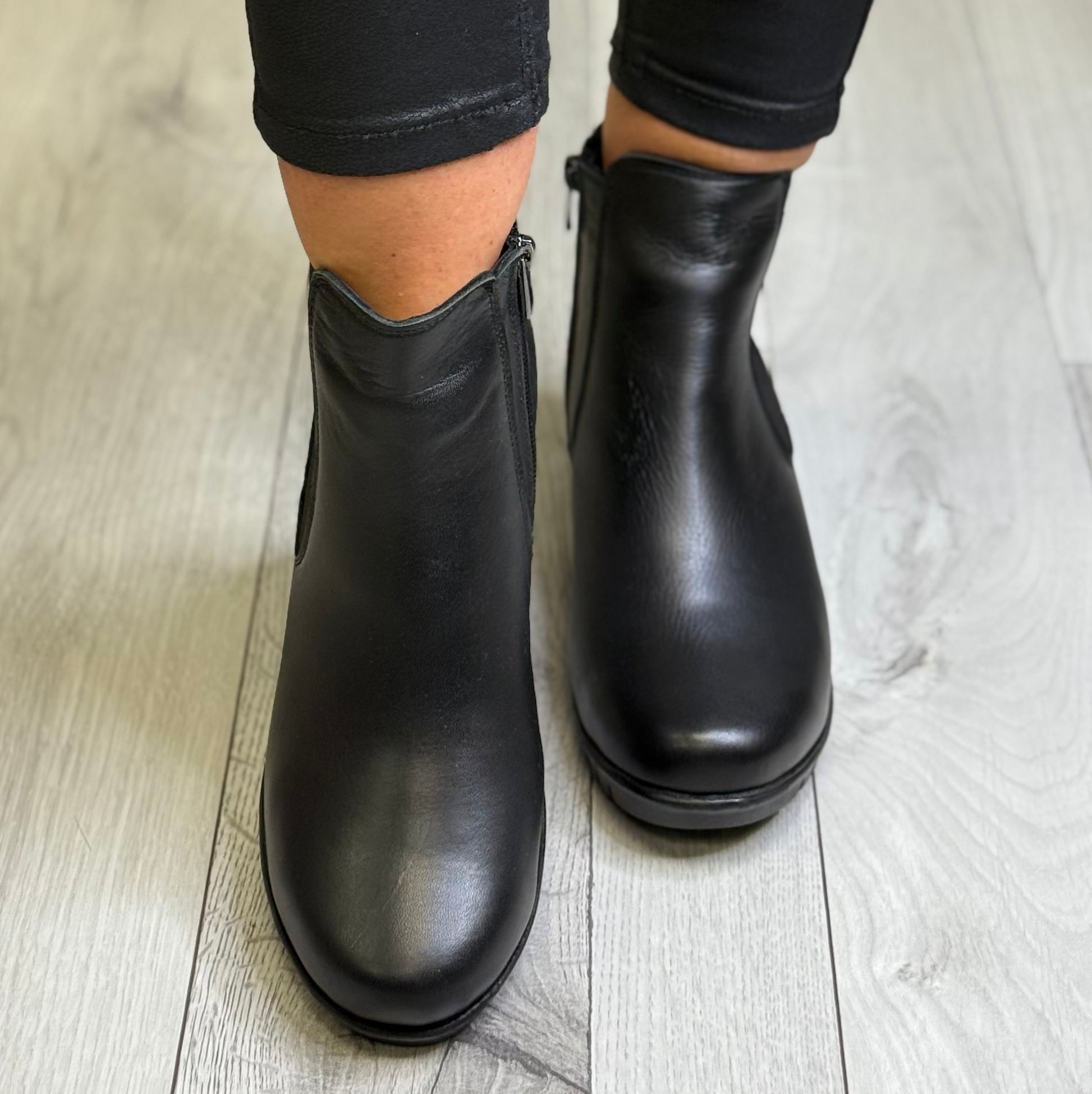 Lotus - 'Dresden' Black Leather Wedge Boot
