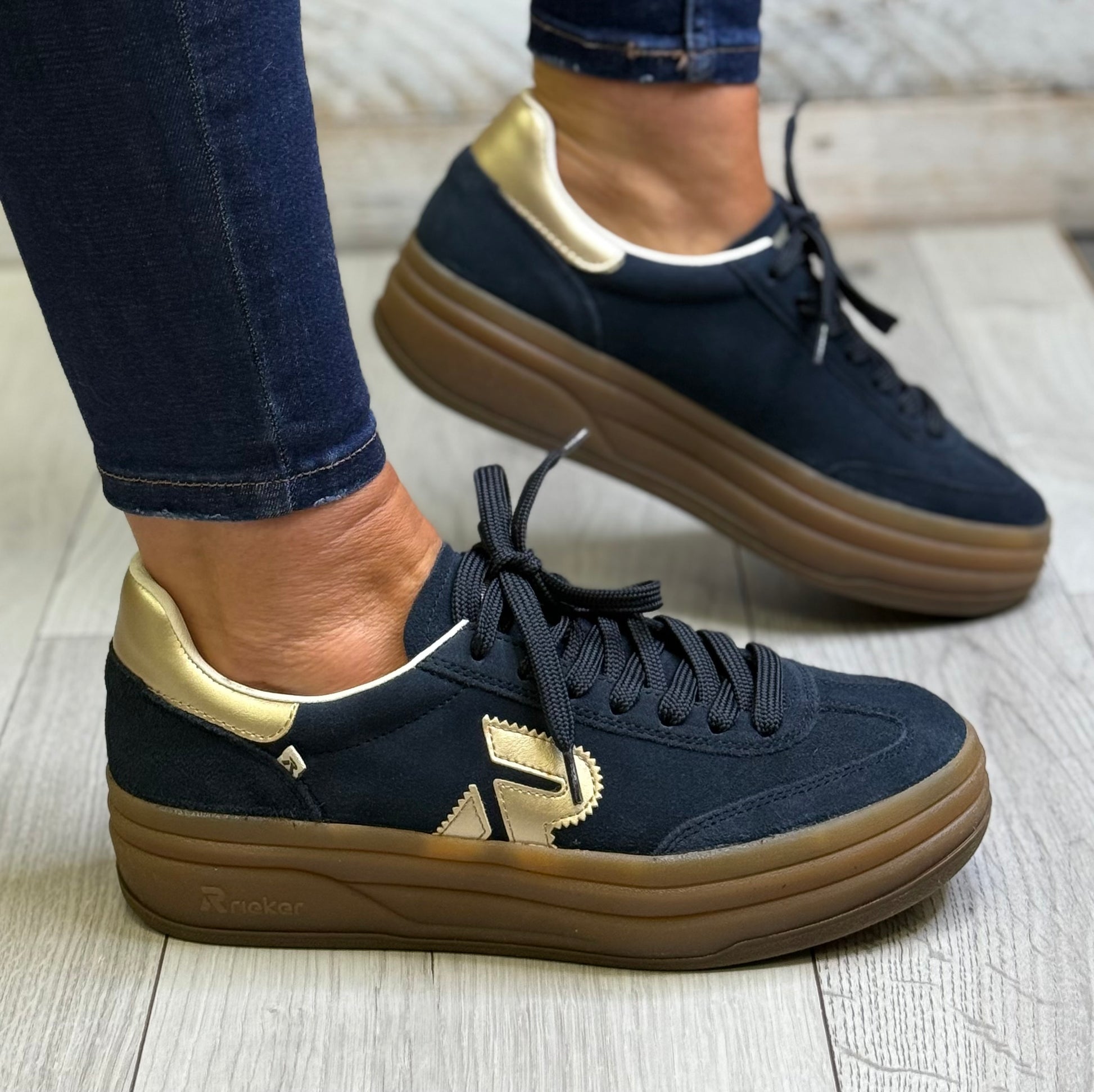 Rieker - Navy Blue Gum Sole Platform Trainer