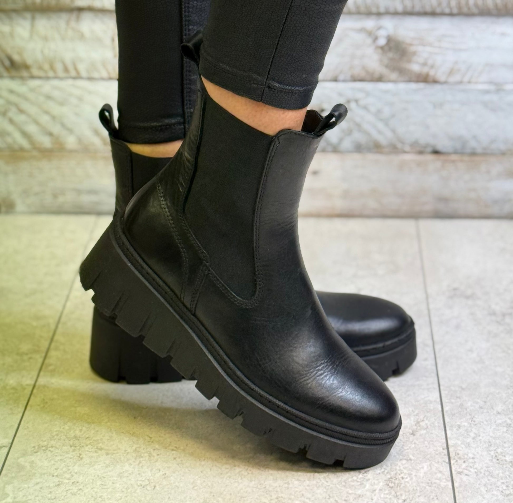 Tamaris - Black Leather Gusset Detail Boot