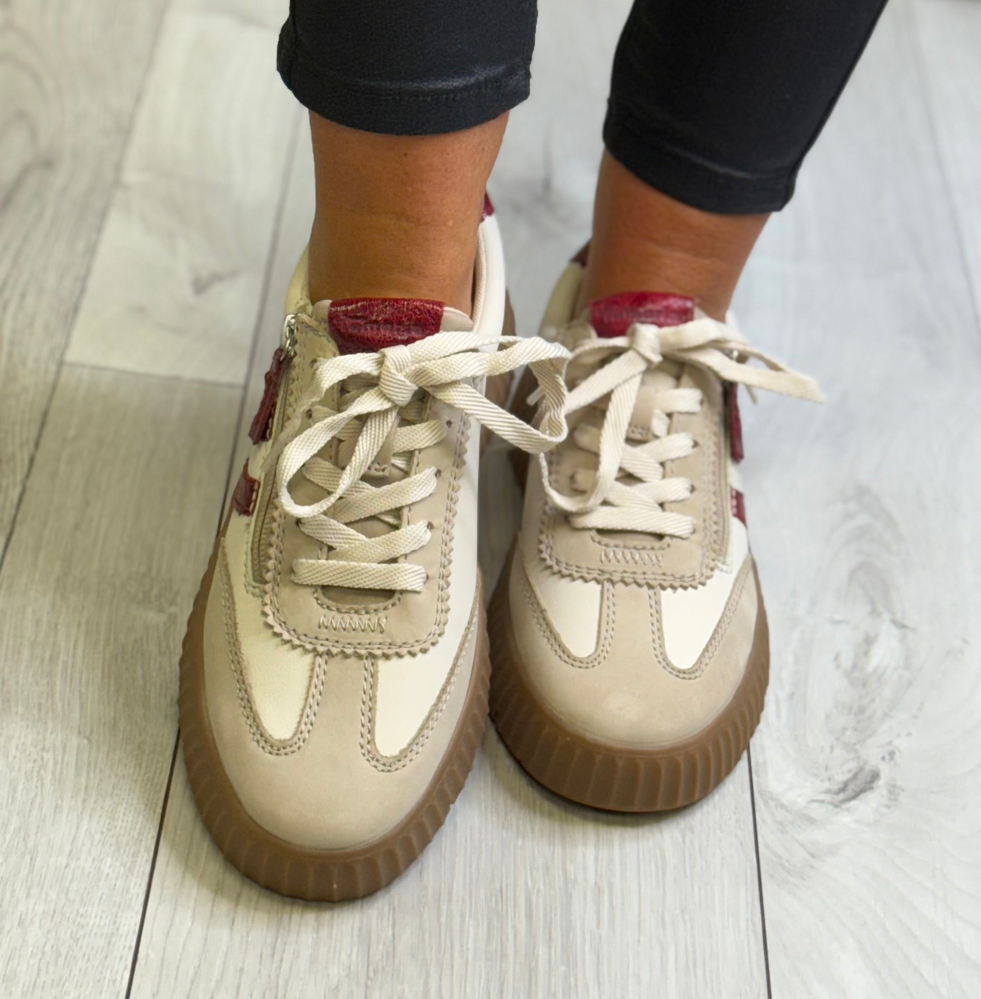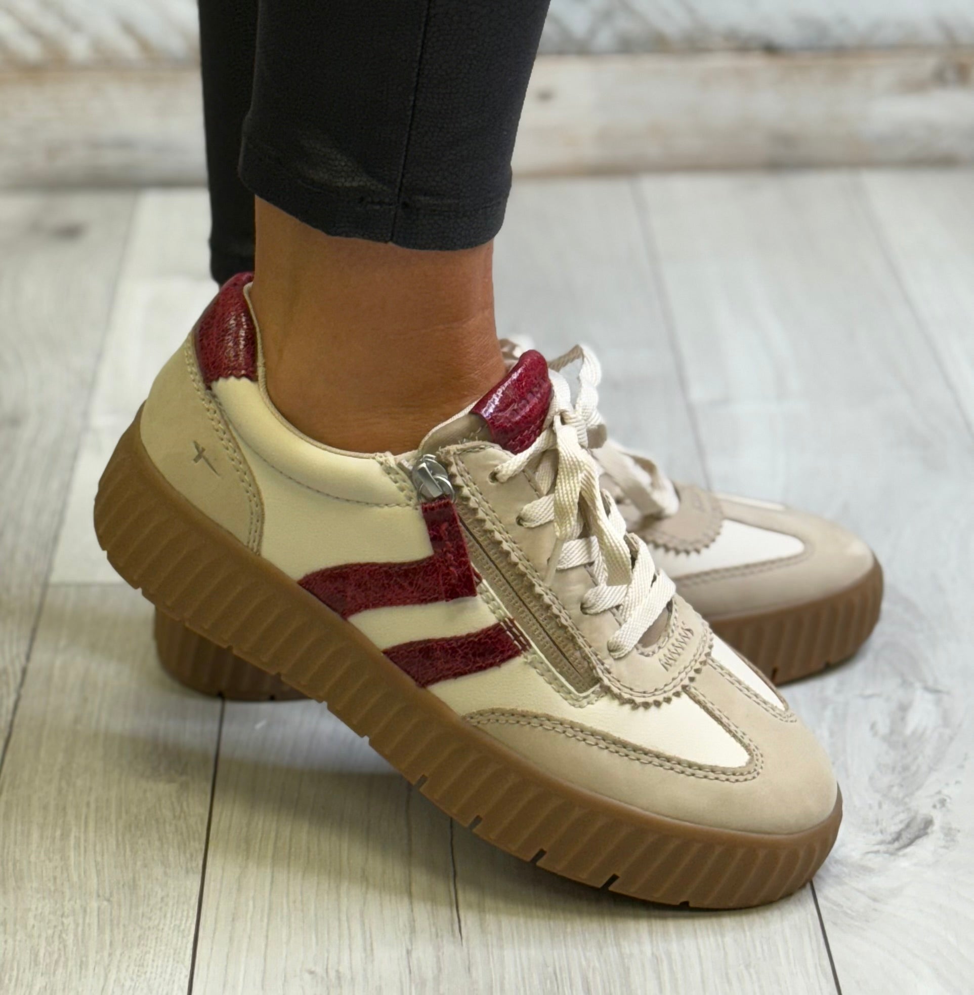 Tamaris Comfort - Beige/Red Side Zip Leather Trainer