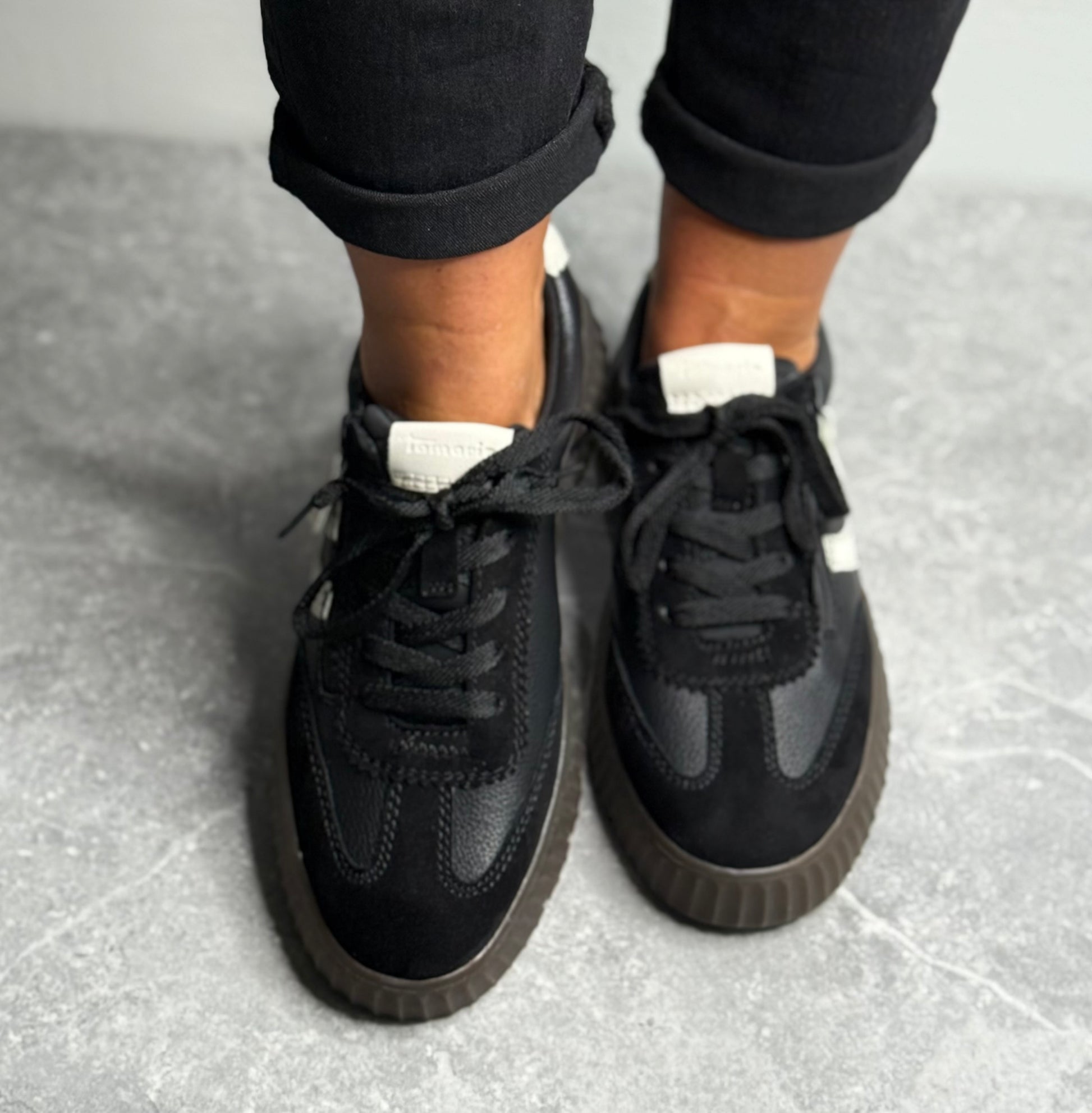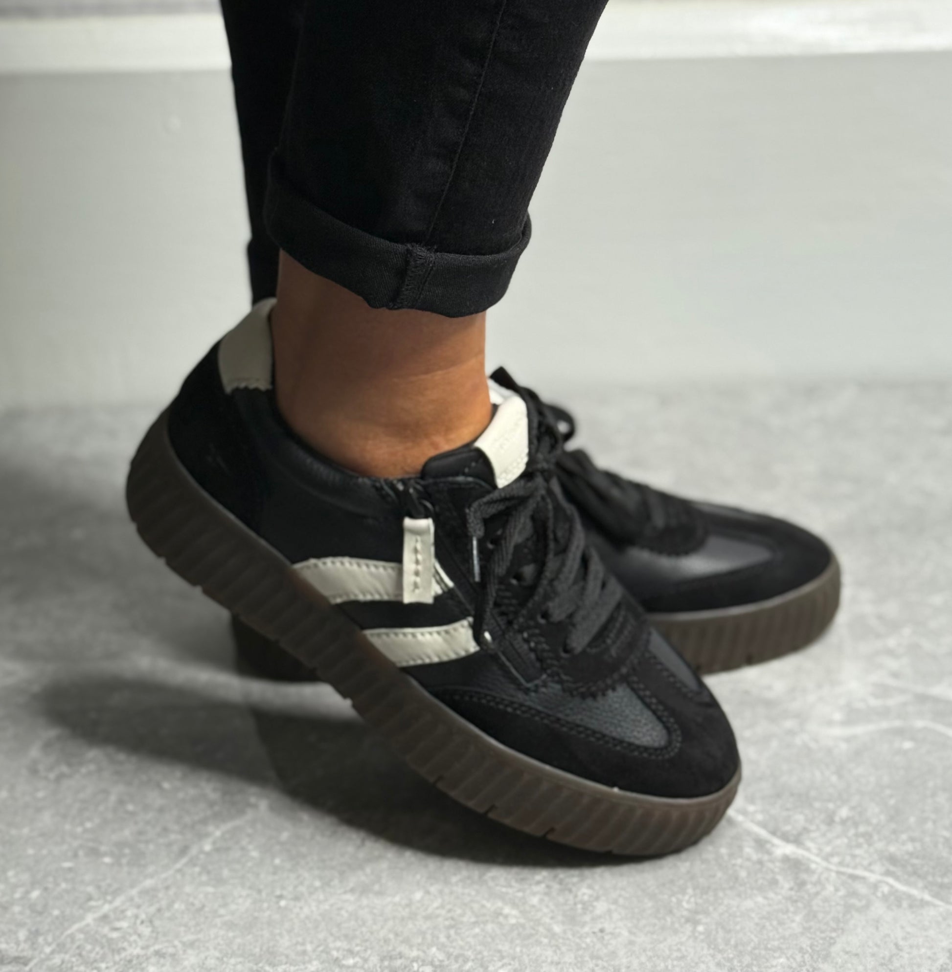 Tamaris Comfort - Black Side Zip Leather Trainer