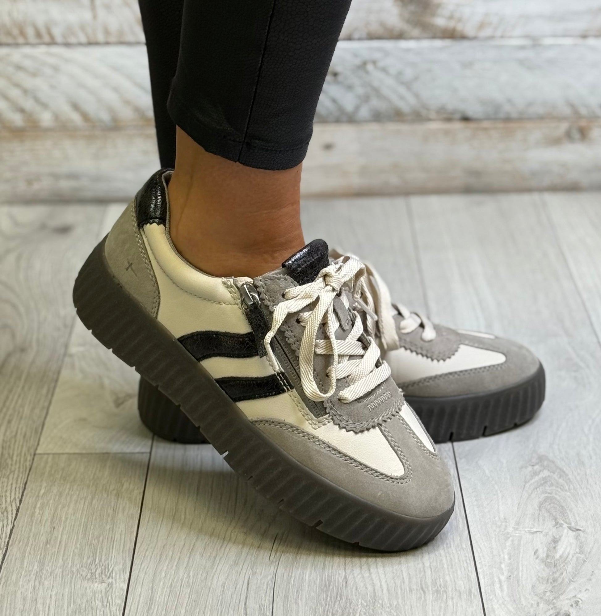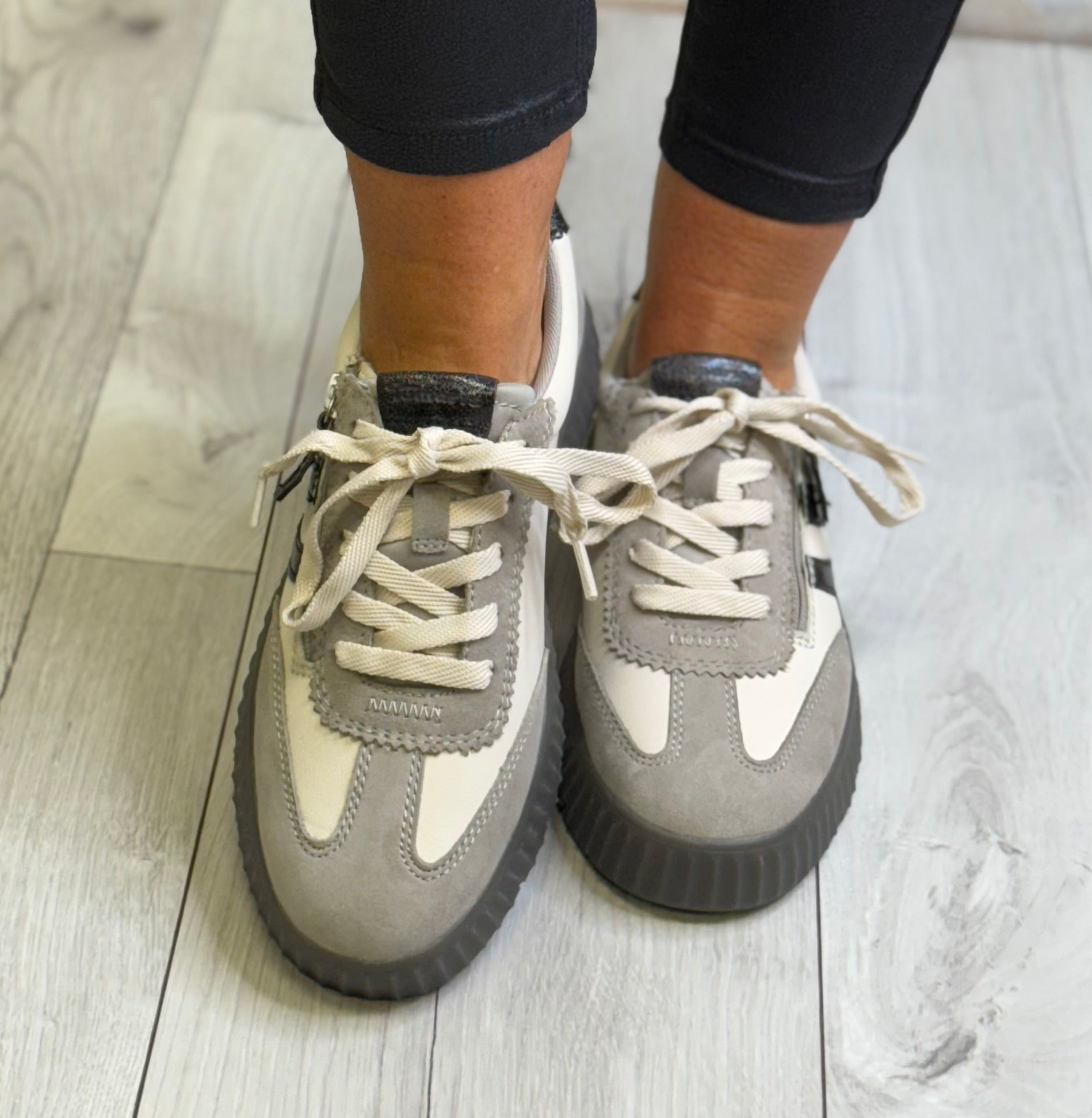 Tamaris Comfort - Light Grey Side Zip Leather Trainer