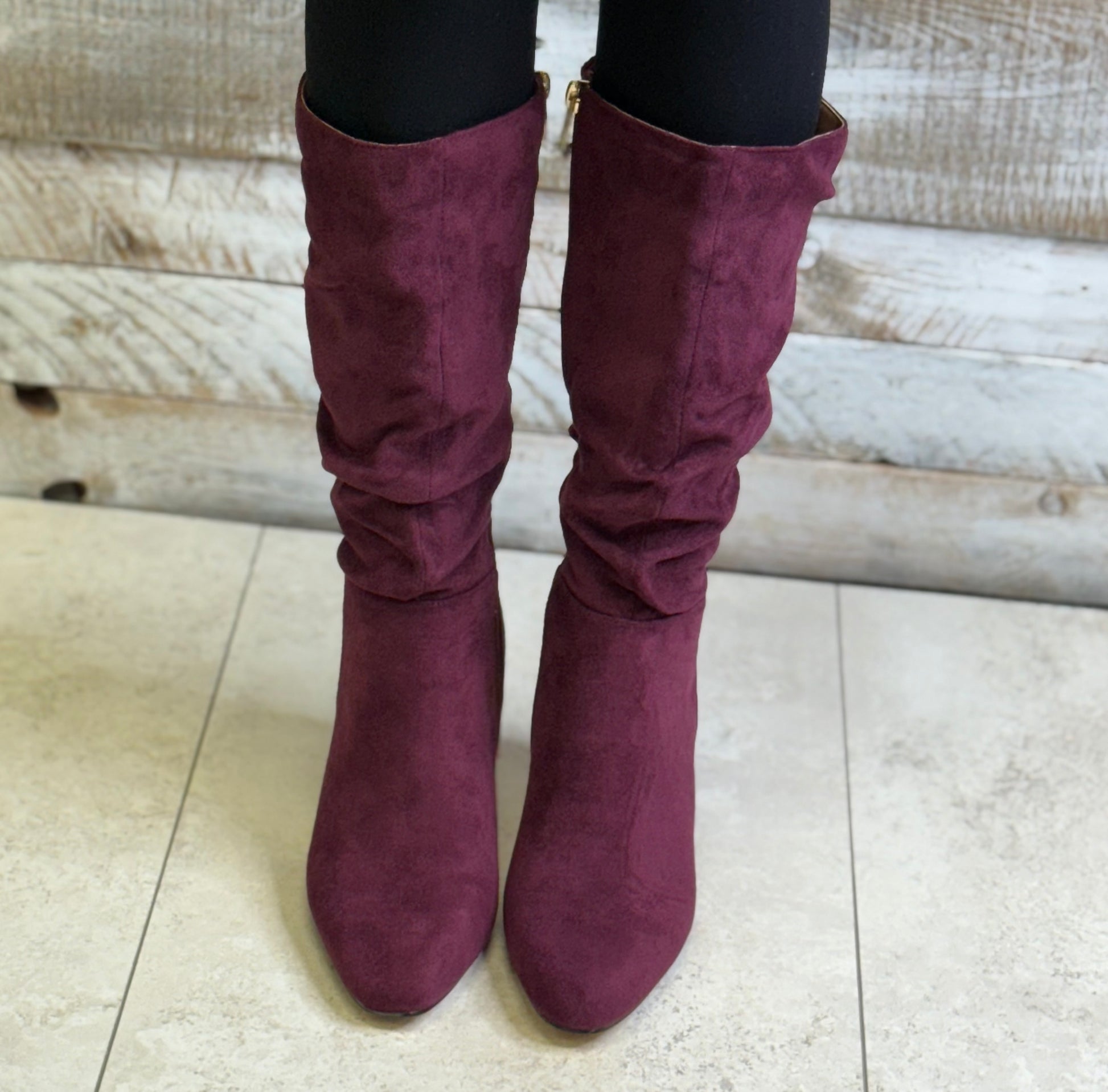 Una Healy - 'Chameleon' Cranberry Ruched Long Boot
