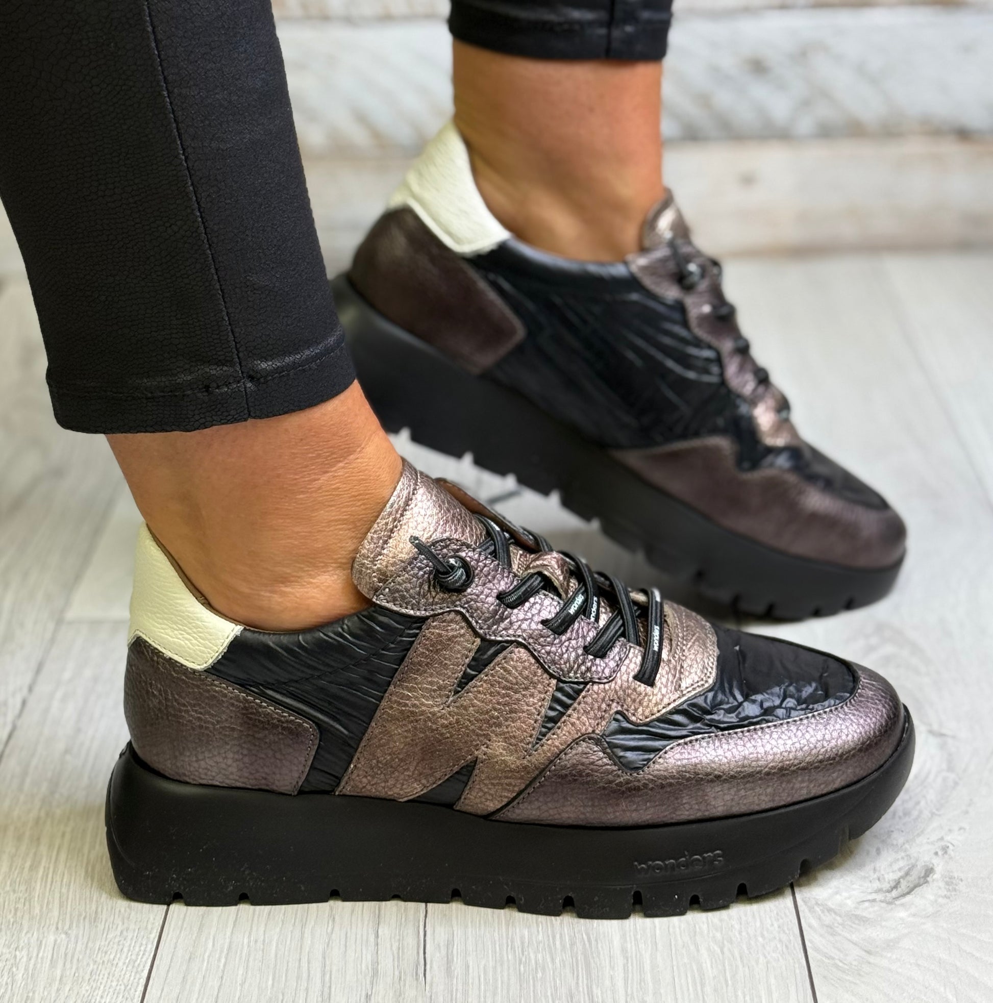 Wonders - A-2491 Black/Bronze Combo Leather Trainer