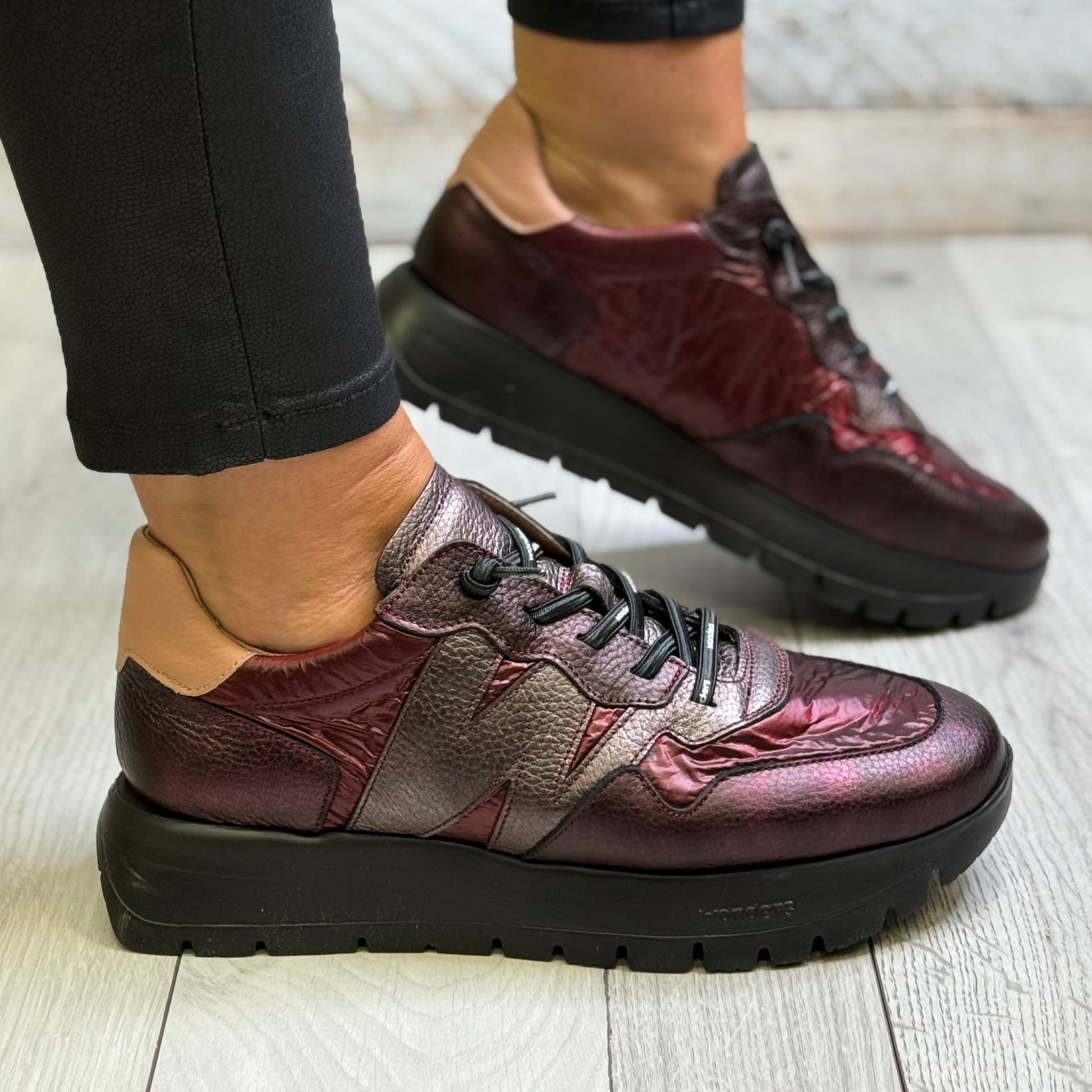 Wonders - A-2491 Wine/Burgundy Combo Leather Trainer