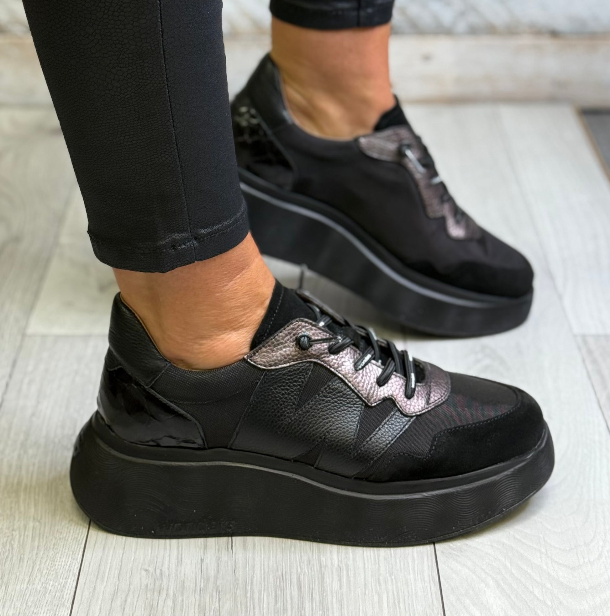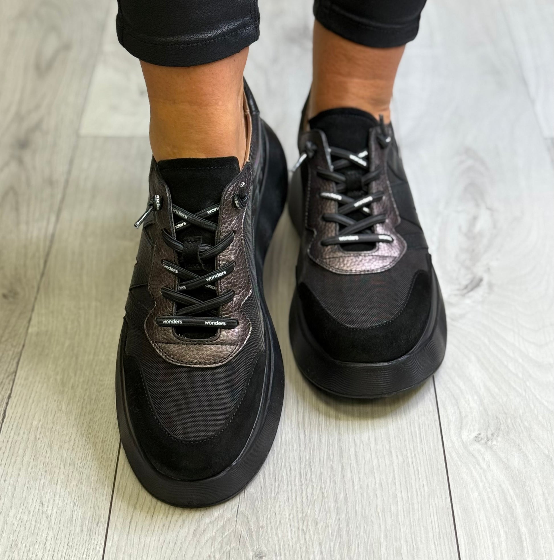 Wonders - A-3631 Black/Bronze Trim Platform Leather Trainer