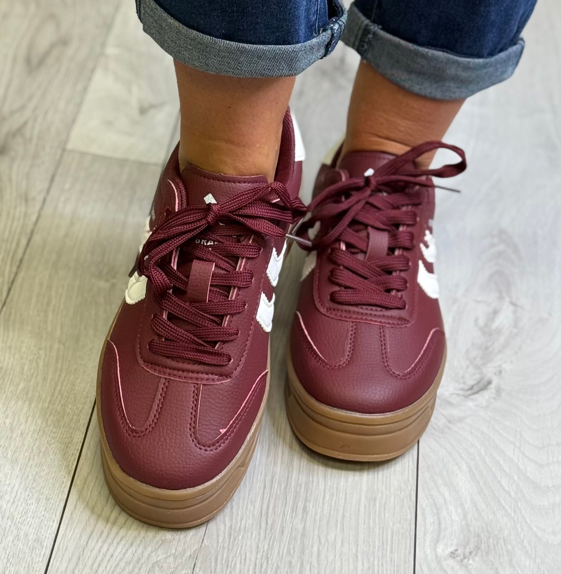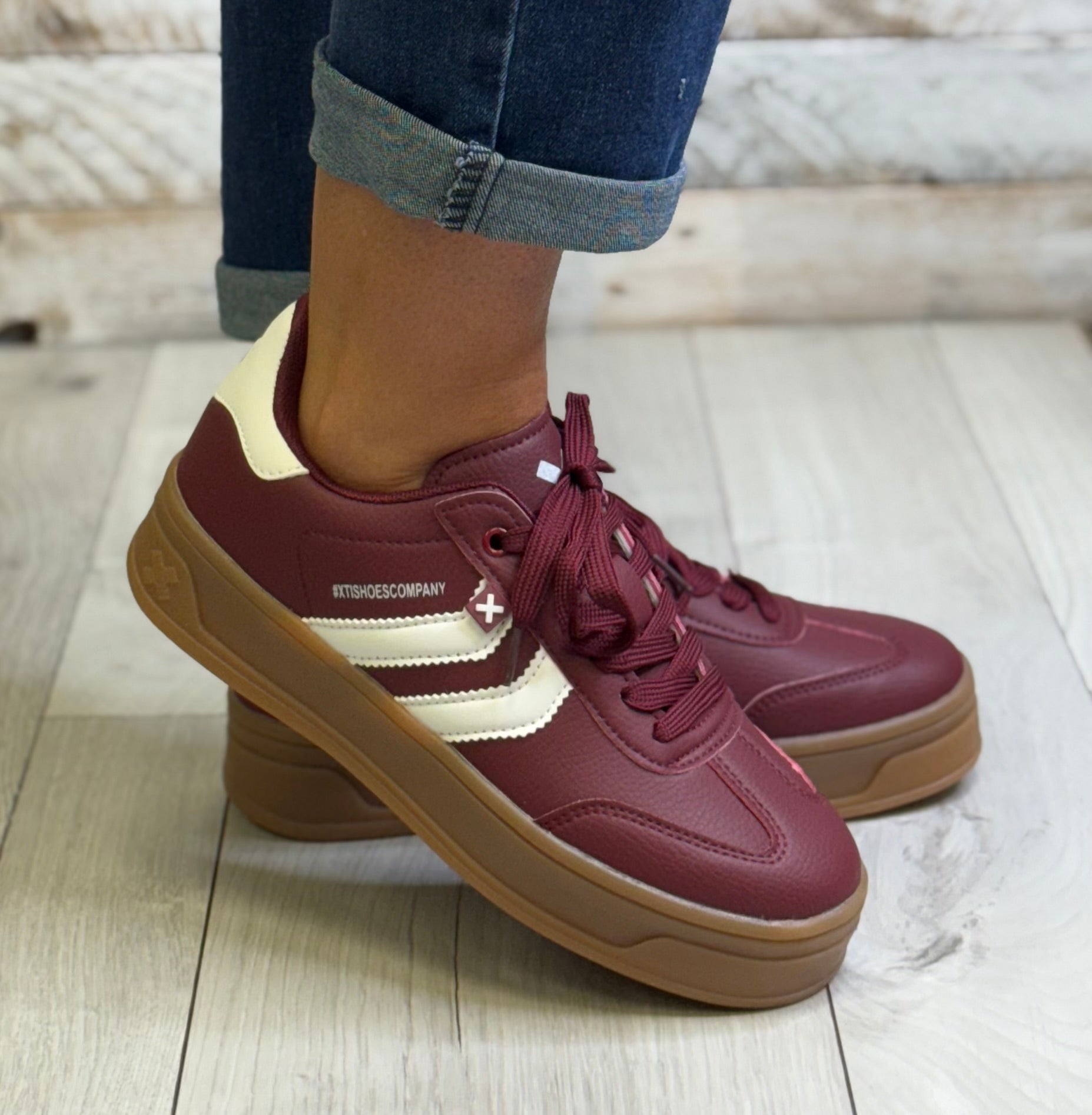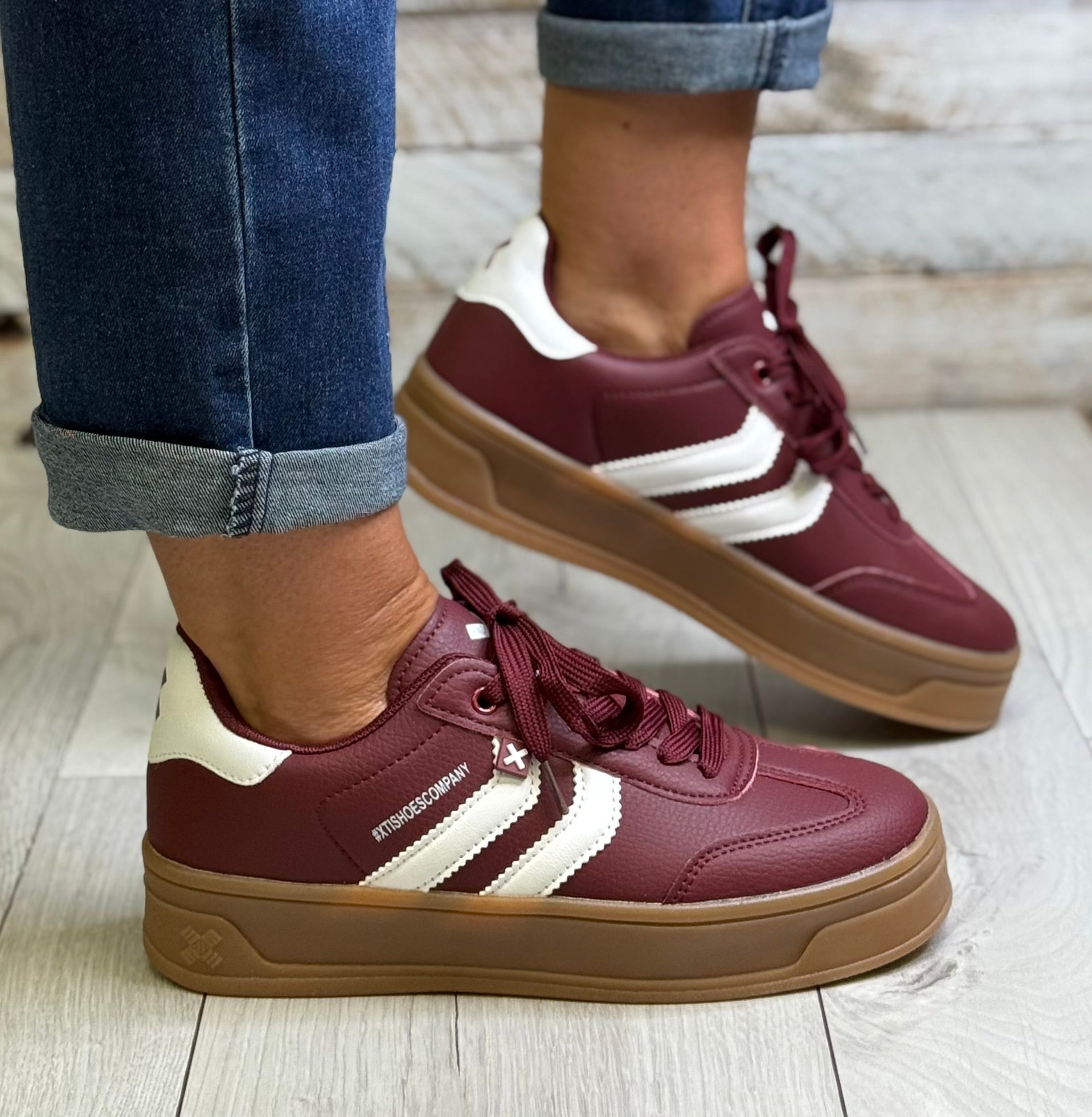 Xti - Burgundy/White Combo Gum Sole Trainer (144585)