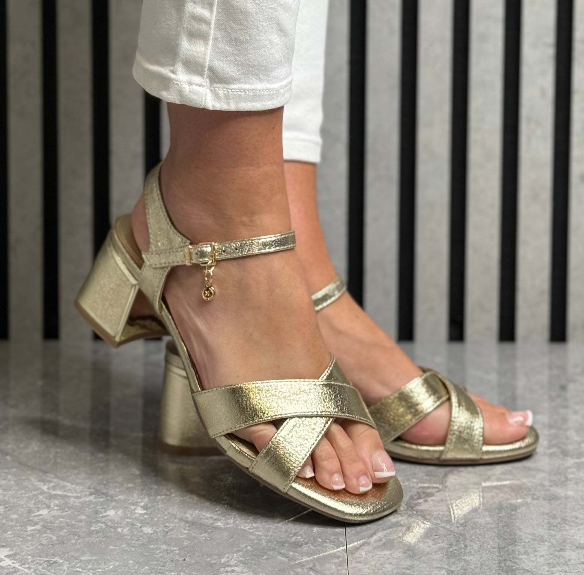 Xti - Gold Metallic Block Heel Sandal (145344)