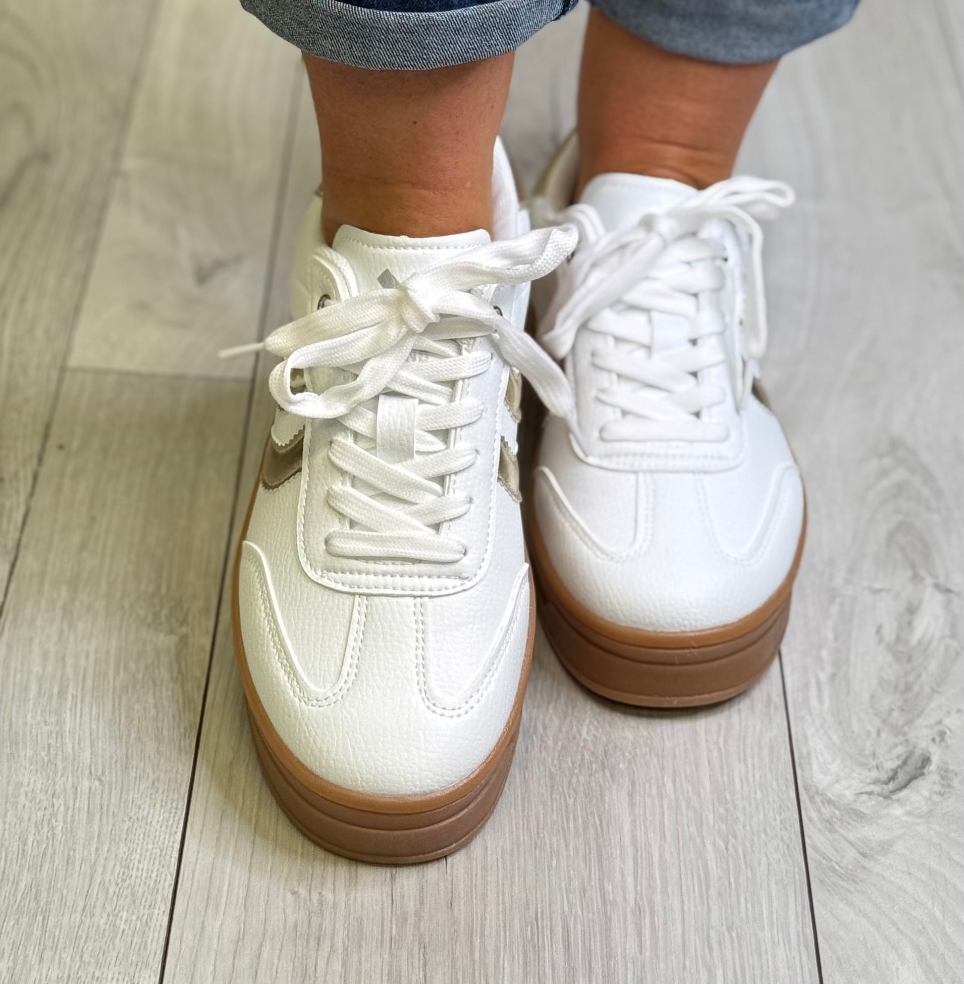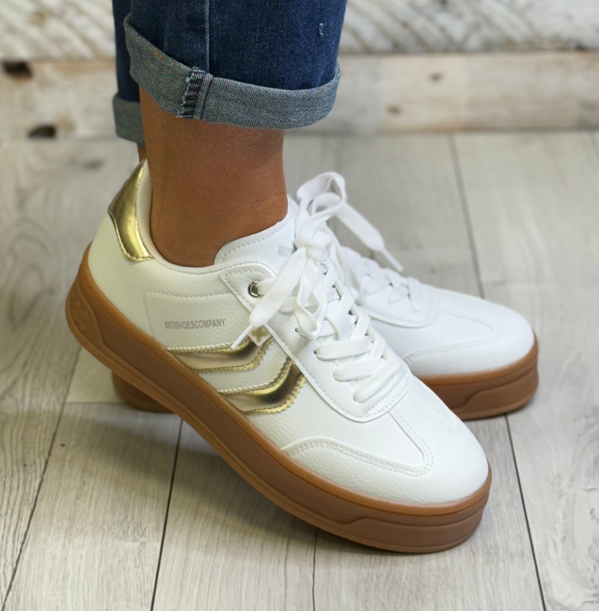 Xti - White/Gold Combo Gum Sole Trainer (144585)